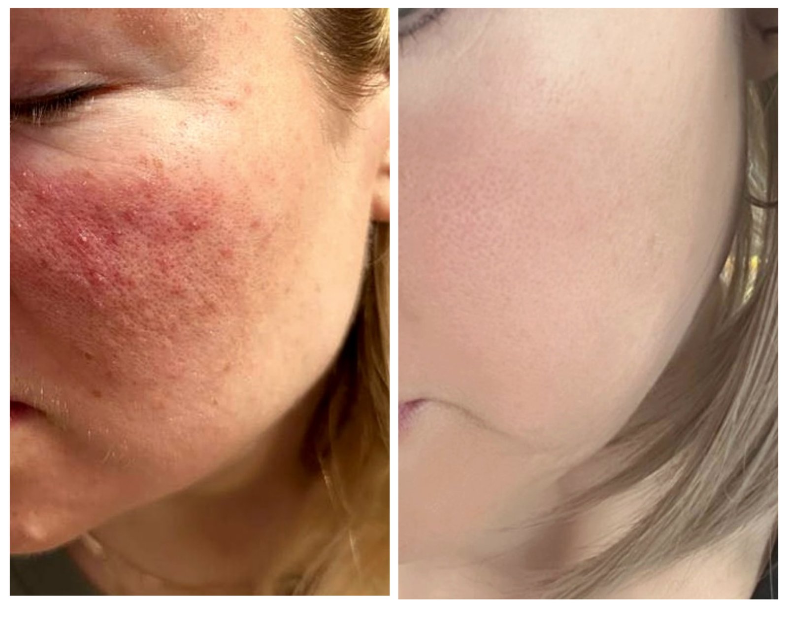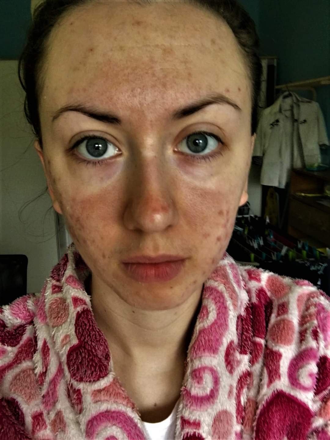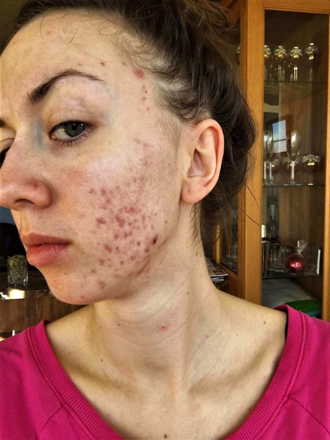 Zde foto spokojené klientky,která přišla s ekzematickou pletí na kterou už ani doma nemohla nic aplikovat. Používala drahou,chemickou kosmetiku od kosmetičky,ale drahá bohužel neznamená dobrá a vhodná. Změnily jsme celý postup péče, jak domácí tak na kosmetice a tohle je výsledek. Foto před foceno večer, foto po ráno, bez úprav, Photoshopu či makeupu, prostě přirozená krásná pleť klientky. Děkuji za možnost zveřejnění