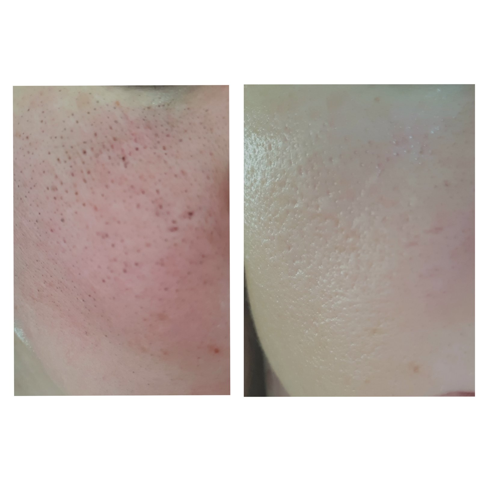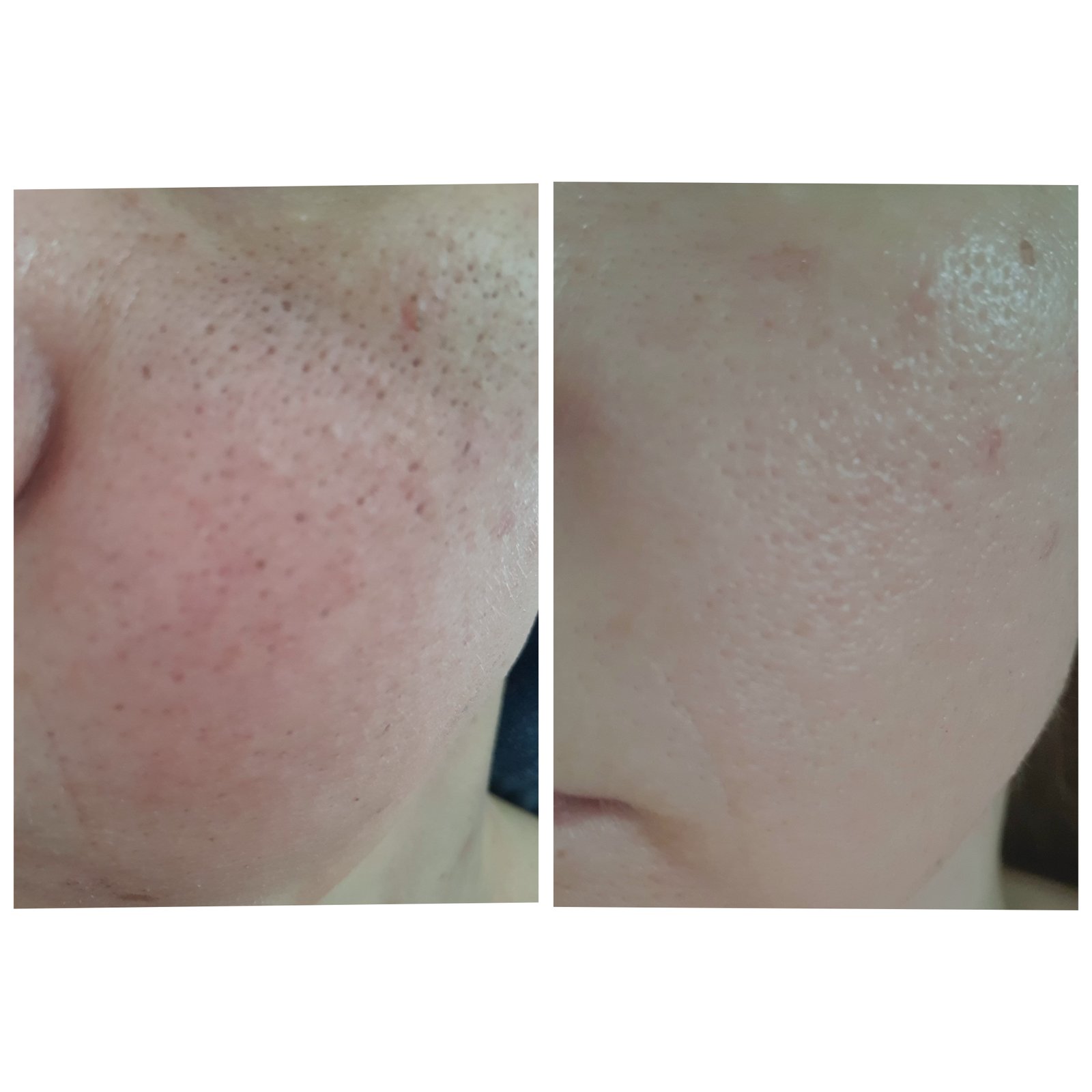 Zde je pleť klientky,která přišla do salónu s tím, že měla natolik do hloubky ucpané póry, že jí je nebyl schopen nikdo vyčistit. Při dobré přípravě (v salonu jsem použila navíc i prokrvující masku z chilli papriček) to ale problém není. Navíc už dávno neplatí že po hloubkovém čištění odcházíte oteklé a červené. Při dobrém ošetření se pleť dokáže hojit velmi rychle. Takže tady jedno před a po hodině.